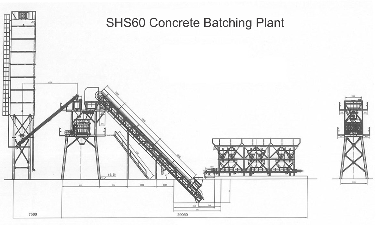 SHS60 series concrete batching plant belongs to compulsory and efficiency equipment, it can produce various kinds of concrete including quaking concrete and hard concrete, with high produce efficiency, it is widely used large and medium scale building works, road and bridge works and concrete products prefabrication plants, and is an ideal equipment to produce commercial concrete.